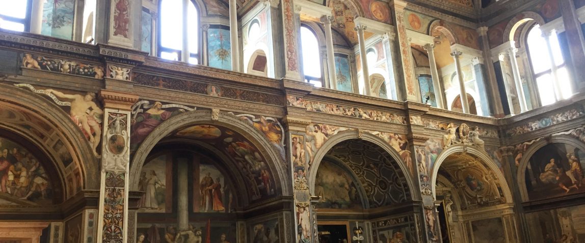 Le chiese dipinte sono due in realtà: quella pubblica, per la nobiltà milanese che veniva a sentir messa, e quella privata, per le monache, in clausura anche se non strettissima, lo sappiamo!